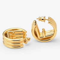 Triple-hoop earrings with F is Fendi motif. Small size. Made of metal with a gold finish. Made in Italy Composition: 100% bronze Product Code: 8AK990B08F0CFK Product Care: The product you have purchased may be embellished with a precious metal top or varnish and may also feature appliques, gemstones (in various shades of the same color), crystals, plexiglass or resin. The mixture of materials and the special details give this product its unique character. To best maintain the product’s appearance over time, avoid contact with sea water, spa water, lacquers, perfumes, solvents, chemicals and abrasive materials. If necessary, clean with water and a neutral soap and/or polish with a dry microfiber cloth.