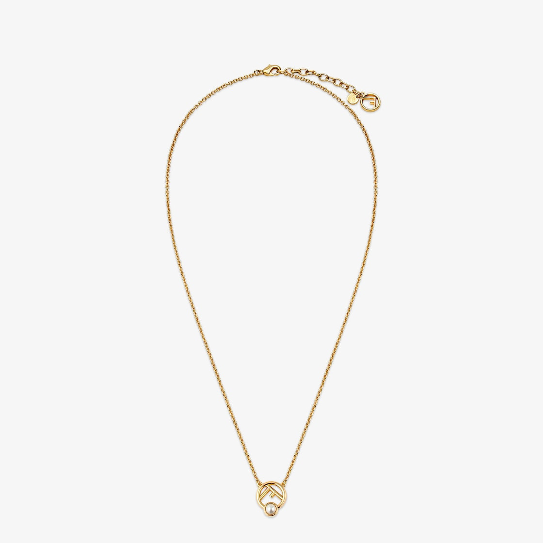 Fine chain necklace with F is Fendi pendant. Clip closure. Made of gold-finish metal. Decorated with a white bijou pearl. Made in Italy Composition: 100% brass, rhinestone: 100% crystal Product Code: 8AK324A5TOF09ZE Product Care: The product you have purchased may be embellished with a precious metal top or varnish and may also feature appliqués, gemstones (in various shades of the same color), crystals, plexiglass or resin. The mixture of materials and the special details give this product its unique character. To best maintain the product’s appearance over time, avoid contact with sea water, spa water, lacquers, perfumes, solvents, chemicals and abrasive materials. If necessary, clean with water and a neutral soap and/or polish with a dry microfiber cloth.
