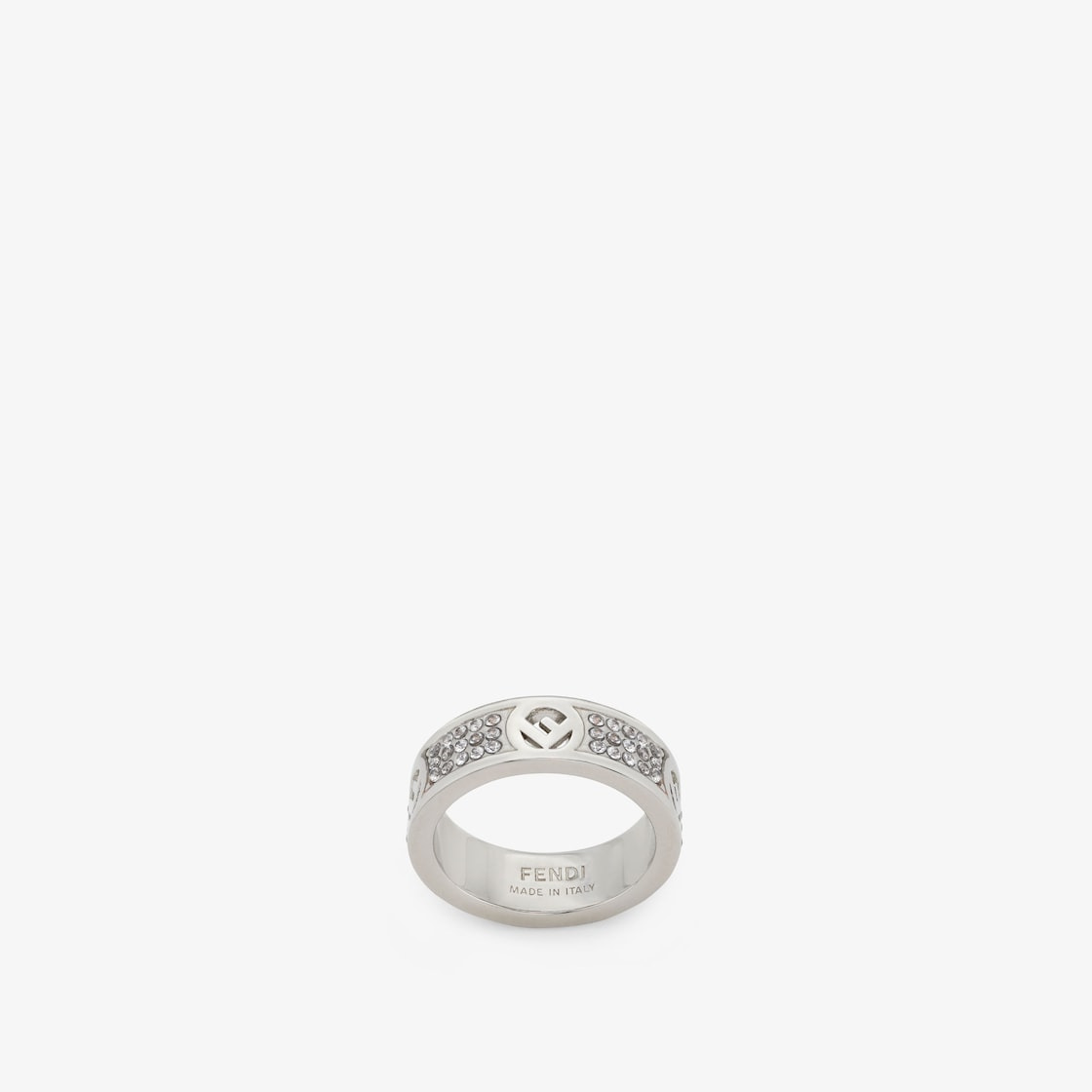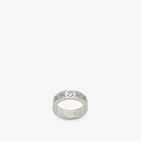 Ring with engraved decoration in the F is Fendi shape. Made of palladium-finish metal. Decorated with natural crystals. Made in Italy Composition: 100% Brass, 100% Zirconia Model height: null Size worn: null Measurements: - Band height : 0.6 cm Product Code: 8AG9296GXF035M Product Care: The product you have purchased may be embellished with a precious metal top or varnish, and may also feature appliqués, stones (in various shades of the same color), crystals, plexiglass and resin. The mixture of materials and the unique features of the product are what give it its character. In order to best maintain the product’s appearance over time, we recommend avoiding contact with sea water, spa water, lacquers, perfumes, solvents, chemicals and abrasive materials. If necessary, clean with water and a neutral soap and/or polish with a dry microfiber cloth.