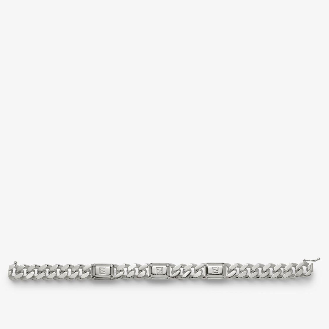 Bracelet with chain link, made of sterling 925 for an extraordinary style statement. Part of the new Fendi 925 men’s fashion jewelry line, inspired by the shapes of precious stones. The bracelet features distinctive and exclusive rectangular-shaped details with engraved FF motif. Box clasp with safety fastening. Made in Italy Composition: 100% silver-29g Product Code: 7AJ997AV8KF1TR9 Product Care: Keep the product away from perfumes, cosmetics and solvents, sea water and chlorinated water. Store the product in a separate, cool and dry place. Silver naturally tends to tarnish over time. If this happens, feel free to contact the Fendi Client Service or our boutique staff in person.