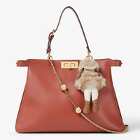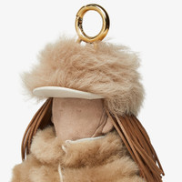 Silvia bag charm made of suede with brown nappa leather hair. Shearling hat and jacket with leather details. Leather pants and boots. Leather loop with clip and hot-stamped Fendi Roma logo on the back. Gold-finish metalware. Perfect for customizing the look of the collection bags. Made in Italy This product is not a toy and is intended as intended exclusively for adults. Composition: 100% zamak, 100% goat leather, 100% sheep fur, 100% lamb leather, padding: 100% polyester Product Code: 7AS436AYIHF0MWU