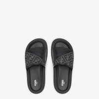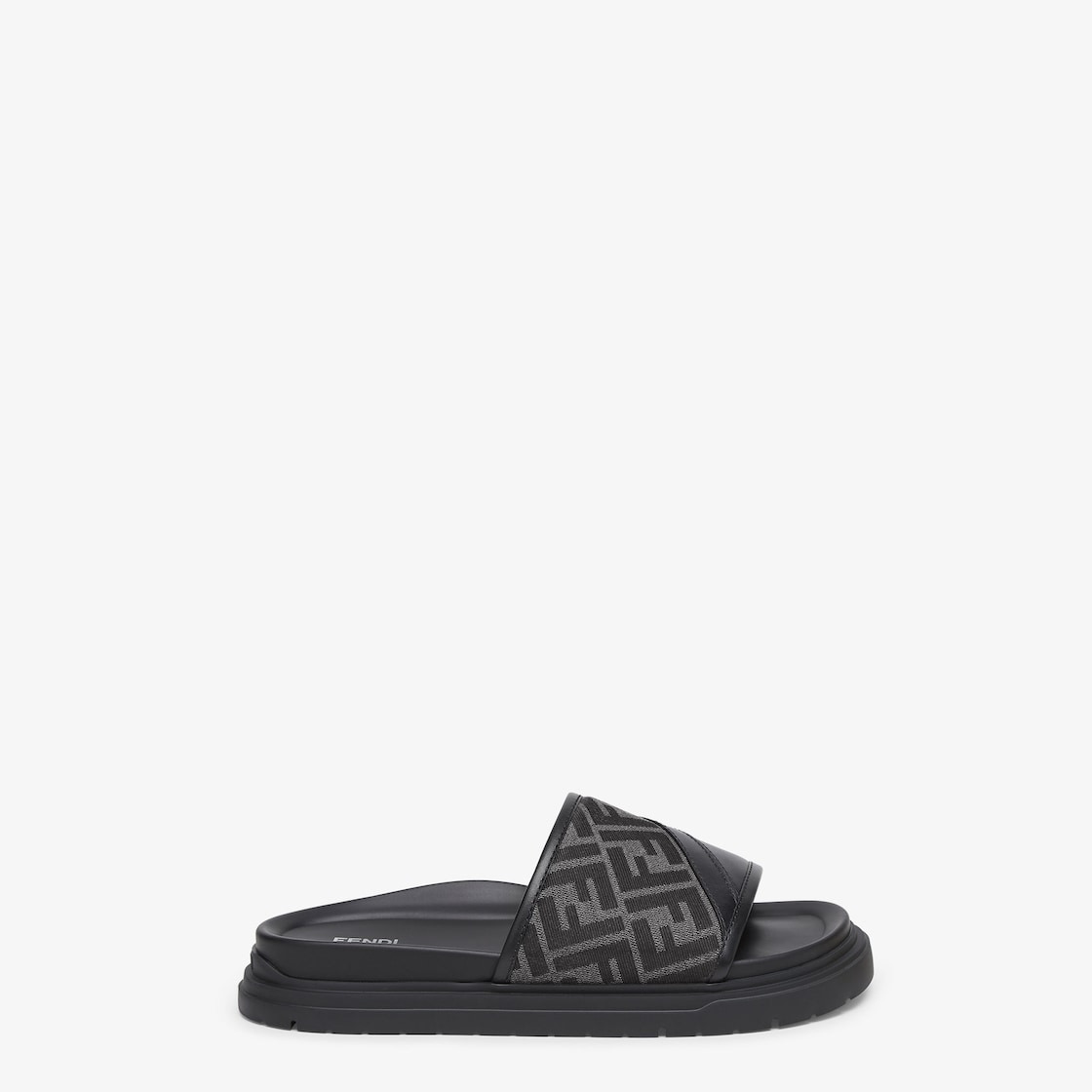 Sandals with wide padded band. Non-slip rubber soles. Made of gray FF jacquard and black leather, with a black leather diagonal insert. Made in Italy Composition: 65% polyamide, 35% cotton, 100% resins, 100% calf leather, inside: 100% calf leather Product Code: 7X1674AF5TF1OOG