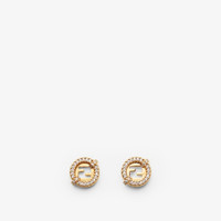 Stud earrings with new Fendi Ever Round logo. Made of metal with a gold finish. Decorated with white crystal bezels on the edge. Made in Italy Composition: 100% bronze, 100% synthetic stone Product Code: 8AL079ATEPF089U Product Care: The product you have purchased may be embellished with a precious metal top or varnish and may also feature appliques, gemstones (in various shades of the same color), crystals, plexiglass or resin. The mixture of materials and the special details give this product its unique character. To best maintain the product’s appearance over time, avoid contact with sea water, spa water, lacquers, perfumes, solvents, chemicals and abrasive materials. If necessary, clean with water and a neutral soap and/or polish with a dry microfiber cloth.