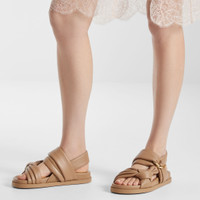 Sandals with padded straps and decorative D-ring buckle with three-dimensional Fendi lettering. Made of beige nappa leather. Rubber sole. Gold-finish metalware. Made in Italy Composition: 100% lamb leather, inside: 100% lamb leather Product Code: 8X8772NBAF0QB8