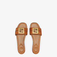 Slip-on flats with square toes and two wrap-around bands. The metal FF detail, with a special design that includes a functional hinge in the center, makes them comfortable to walk in. Made of shiny beige eel leather. Gold-finish metalware. Made in Italy Composition: 100% eel, inside:100% goat leather Product Code: 8R8554AOSHF0QB9