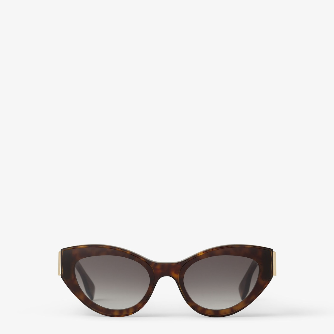 Fendi First cat-eye eyeglasses in Havana acetate. Temples with oversize diagonal F motif in gold-colored metal. Brown gradient lenses. Made in Italy Composition: 100% acetate Product Code: FOA056V1PF1U7I Product Care: Wash your eyeglasses every day with warm water and a pH-neutral soap.Do not use alcohol, aggressive chemical products or disinfectant wipes and do not dry them with paper or other cloths that could scratch them or leave streaks.Dry with a clean microfiber cloth.After use, always keep your eyeglasses in their case.