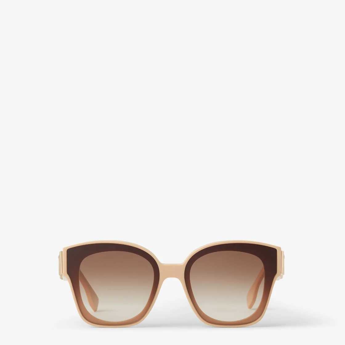 Square Fendi First eyeglasses in light pink acetate. Temples with oversize diagonal F motif in gold-colored metal. Brown gradient lenses. Made in Italy Composition: 100% acetate Product Code: FOL053V1PF1U7N Product Care: Wash your eyeglasses every day with warm water and a pH-neutral soap.Do not use alcohol, aggressive chemical products or disinfectant wipes and do not dry them with paper or other cloths that could scratch them or leave streaks.Dry with a clean microfiber cloth.After use, always keep your eyeglasses in their case.