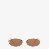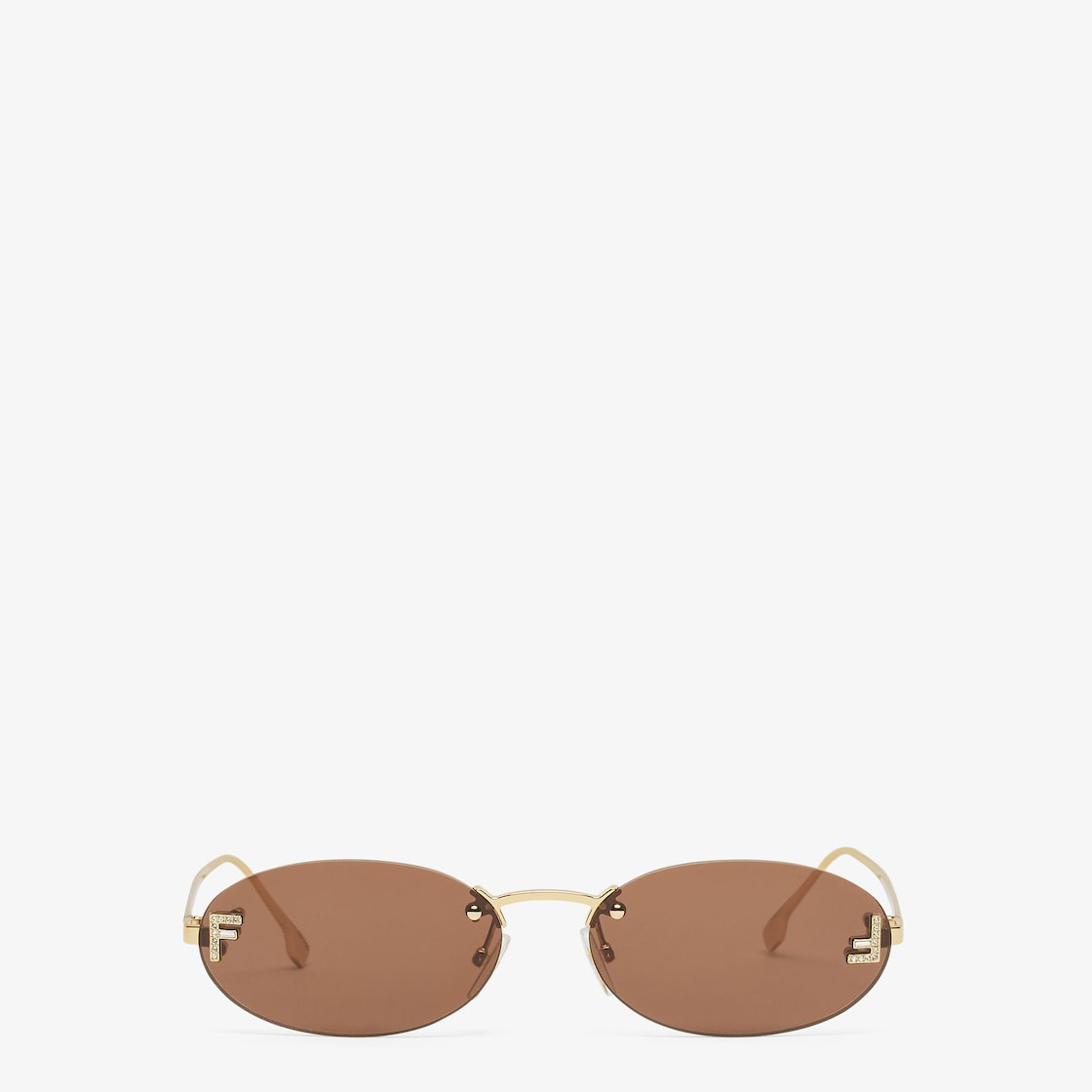 Oval Fendi First Crystal eyeglasses with a gold-colored rimless metal structure. Mirror-effect brown lenses and micro F in crystals. Adjustable nose pads. Made in Italy Composition: 100% metal Product Code: FOL043V1TF1NYD Product Care: Wash your eyeglasses every day with warm water and a pH-neutral soap.Do not use alcohol, aggressive chemical products or disinfectant wipes and do not dry them with paper or other cloths that could scratch them or leave streaks.Dry with a clean microfiber cloth.After use, always keep your eyeglasses in their case.