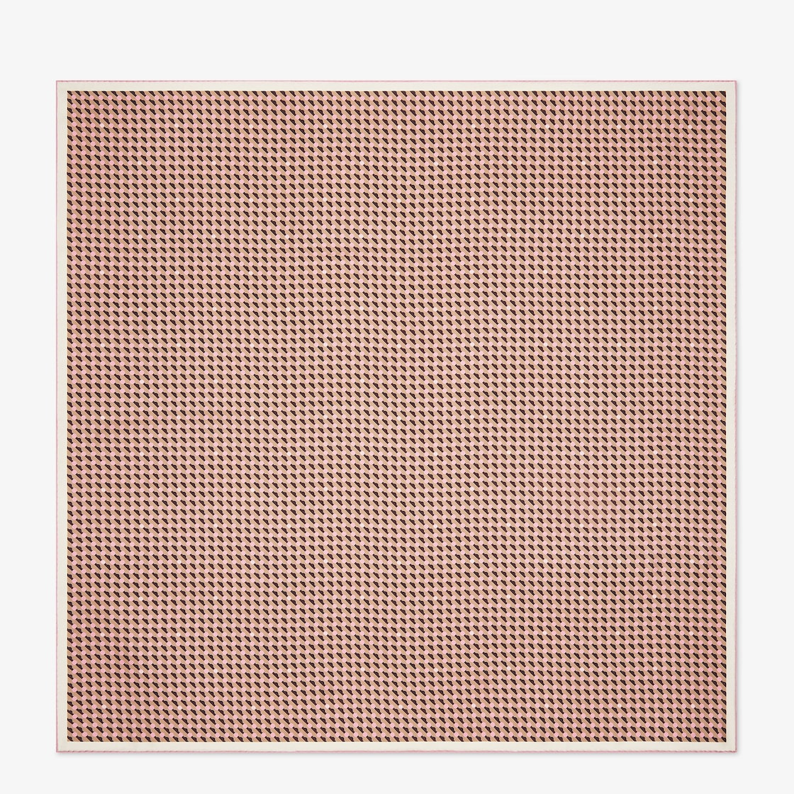 Square foulard made of pink silk. Decorated with the Fendi Dots motif featuring micro polka dots interwoven with diagonal stripes and the FF logo. The design is enhanced by a striped color-block frame. Hand-rolled hems. Made in Italy Composition: 100% silk Product Code: FXT091AYLBF0B8Y