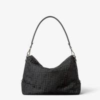 Large Fendi Lui bag with a soft design, made of black padded FF nylon with a shiny and lightly embossed texture, and black smooth calf leather. Decorated with a long zip fastening with double slider and FF metal appliques on the corners. Large interior compartment with fabric lining, internal flat pocket and metalware with brushed ruthenium finish. The bag can be carried by hand, on the shoulder or cross-body, thanks to the removable leather handle and adjustable, detachable webbing shoulder strap. Made in Italy Composition: 100% polyamide, 100% calf leather, inside: 63% cotton, 34% polyester, 3% acrylic Product Code: 7VA667AVC6F0SAJ