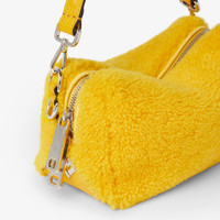 Small Fendi Lui bag with a soft design, made of yellow curly shearling. Decorated with a long zipper closure with double slider and FF metal appliques on the corners. Finished in tone-on-tone Cuoio Romano leather. Fabric-lined internal compartment and palladium-finish metalware. The bag can be carried by hand, worn on the shoulder or across the body thanks to the removable handle and removable and adjustable shoulder strap, both in leather. Made in Italy Composition: 100% sheep fur, 100% calf leather, inside: 63% cotton, 34% polyester, 3% acrylic Product Code: 7VA668AVV1F05N6