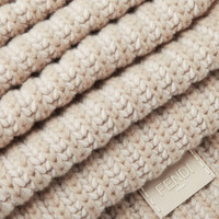 Rectangular scarf in a luxurious blend of two-tone, camelia cashmere and wool, featuring a 3D-effect herringbone motif. Camelia leather patch with embossed Fendi Roma logo and Selleria-inspired macro stitching on the hem. Made in Italy Composition: 85% fleece wool, 15% cashmere Product Code: FXT459AYKNF0NH8