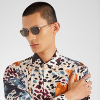 Rectangular, semi-rimless Fendi Sky glasses made of metal with a gold finish. Black enameled FF logo. Black acetate tips with FF motif. Dark green lenses. Adjustable nose pads. Made in Italy Composition: 100% metal Product Code: FOL594V1TF13AP Product Care: Wash your eyeglasses every day with warm water and a pH-neutral soap.Do not use alcohol, aggressive chemical products or disinfectant wipes and do not dry them with paper or other fabrics that could scratch them or leave streaks.Dry with a clean microfiber fabric.After use, always keep your eyeglasses in their case.