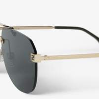 Aviator, ultra-lightweight Fendi Sky glasses featuring green lenses and metal end pieces with 3D FF customisation. Slim gold-colored metal temples with green acetate tips. Adjustable nose pads. Made in Italy Composition: 100% metal Product Code: FOL553V1TF1NYC Product Care: Wash your eyeglasses every day with warm water and a pH-neutral soap.Do not use alcohol, aggressive chemical products or disinfectant wipes and do not dry them with paper or other cloths that could scratch them or leave streaks.Dry with a clean microfiber cloth.After use, always keep your eyeglasses in their case.