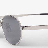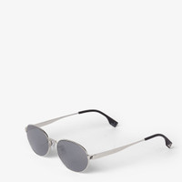 Metal oval sunglasses with a palladium finish. FF logo finished with enamel. Black acetate tips with FF motif. Smoke-gray lenses with flash effect. Adjustable nose pads. Made in Italy Composition: 100% metal Product Code: FOL586V1TF1UI0 Product Care: Wash your eyeglasses every day with warm water and a pH-neutral soap.Do not use alcohol, aggressive chemical products or disinfectant wipes and do not dry them with paper or other cloths that could scratch them or leave streaks.Dry with a clean microfiber cloth.After use, always keep your eyeglasses in their case.