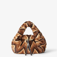 Small Fendi Spy Bag, a contemporary reinterpretation of a famous Fendi It bag presented in the Spring Summer 2005 Fashion Show, distinguished by its unique and unmistakable design. The name is inspired by the bag’s features, which include a secret pocket hidden in the flap that can be opened with a small button. An expression of fine craftsmanship, it features distinctive twisted handles that embellish the silhouette. Made of soft mink inlaid to create a chevron motif in beige, brown and black with natural nuances. The round flap closure conceals a coin pocket and is trimmed in metal and has a knotted strap in tone-on-tone leather. Featuring a black suede-lined interior and gold-finish metal accessories. The bag can be carried by hand or worn cross-body with the adjustable, detachable black calfskin shoulder strap. Made in Italy Composition: 100% mink fur, interior: 100% calfskin Product Code: 8BR838AYCWF1TDQ