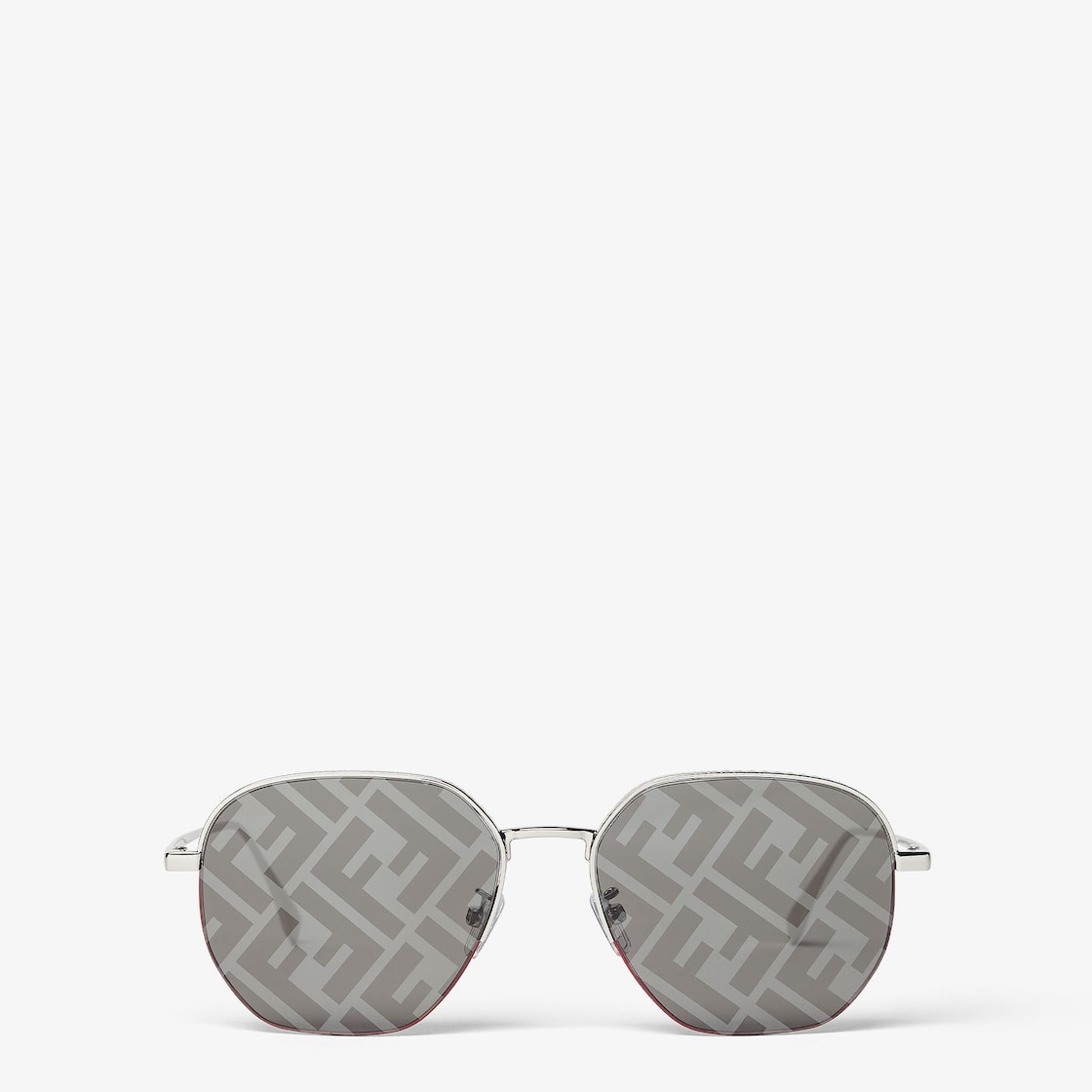Round frames in palladium-finish metal. The front of the frame features an FF pattern engraved on the upper part and a red metal thread on the lower edge. Gray lenses with all-over silver mirror-effect FF logo. Adjustable nose pads branded with the Fendi logo. Made in Italy Composition: 100% Metal Product Code: FOL512AHFEF1F6M Product Care: Wash your glasses every day with warm water and a pH-neutral soap.Do not use alcohol, aggressive chemical products or disinfectant wipes and do not dry them with paper or other cloths that could scratch them or leave streaks.Dry with a clean microfiber cloth.After use, always keep your glasses in their case.