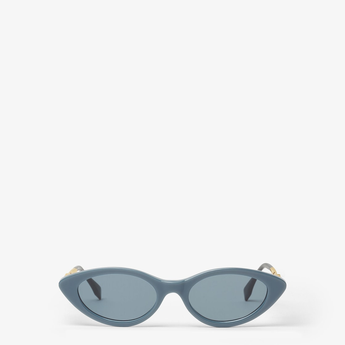 Fendigraphy sunglasses with elongated cat-eye front in denim blue acetate. Large gold-color metal temples, decorated with three-dimensional Fendi Roma lettering and acetate tips matching the front. Blue lenses. Made in Italy Composition: 100% plastic, 100% metal Product Code: FOL137V1WF1VQD Product Care: Wash your eyeglasses every day with warm water and a pH-neutral soap.Do not use alcohol, aggressive chemical products or disinfectant wipes and do not dry them with paper or other fabrics that could scratch them or leave streaks.Dry with a clean microfiber cloth.After use, always keep your eyeglasses in their case.