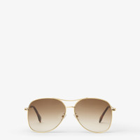 Fendigraphy oversized aviator sunglasses, made of metal with gold finish. Tubular temples are embellished with three-dimensional Fendi lettering and Havana acetate tips. Brown gradient lenses. Adjustable nose pads. Made in Italy Composition: 100% metal Product Code: FOL135V1TF1VQ6 Product Care: Wash your eyeglasses every day with warm water and a pH-neutral soap.Do not use alcohol, aggressive chemical products or disinfectant wipes and do not dry them with paper or other fabrics that could scratch them or leave streaks.Dry with a clean microfiber cloth.After use, always keep your eyeglasses in their case.