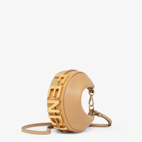 Mini Fendigraphy hobo bag with a contemporary look and bold details. Made of beige calfskin, decorated with vintage gold-finish metal FENDI lettering on the base, visible when the bag is worn. Zipper closure with fabric-lined internal compartment, gold-finish metalware. It can be carried by hand by closing the bag with the clip, or worn on the shoulder or cross-body using the adjustable, detachable shoulder strap inserted inside the side attachment points. Made in Italy Composition: 100% calf leather, inside: 63% cotton, 34% polyester, 3% acrylic Product Code: 8BS081A5DYF1LEQ
