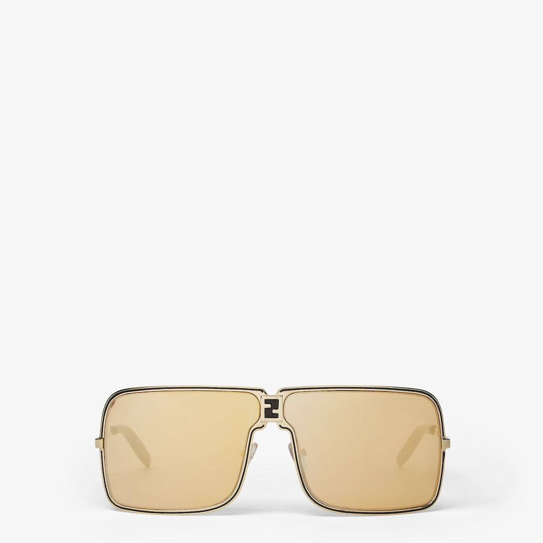 Fendiness rectangular mask-shaped eyeglasses in gold-colored metal, with contrasting enamel edge and FF motif on the bridge. Orange lenses with gold flash effect. Adjustable nose pads. Made in Italy Composition: 100% metal Product Code: FOL130V1TF1UID Product Care: Wash your eyeglasses every day with warm water and a pH-neutral soap.Do not use alcohol, aggressive chemical products or disinfectant wipes and do not dry them with paper or other cloths that could scratch them or leave streaks.Dry with a clean microfiber cloth.After use, always keep your eyeglasses in their case.
