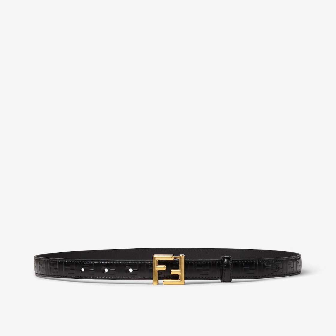 Thin belt with loop and FF stud buckle. Made of black leather with an embossed mini FF print. Metal accessories in a vintage-gold finish. Made in Italy Measurements: - Width : 2 cm Composition: 100% calf leather, interior: 100% calf leather Product Code: 8C0648AQ1VF04TX