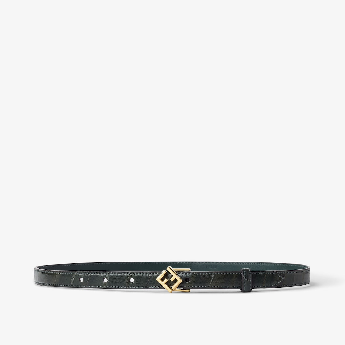 Narrow belt with loop and diagonal FF stud buckle. Made of green hagfish leather with a shiny finish, inlaid diagonally. Gold-finish metalware. Made in Italy Composition: 100% hag fish, inside: 100% calf leather Product Code: 8C0742AV5BF1TDL