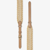 Belt with loop and diagonal FF stud buckle. Made of beige leather with braided back strap. Gold-finish metalware. Made in Italy Composition: 100% calf leather, inside: 100% calf leather Product Code: 8C0746AV1XF1TCK
