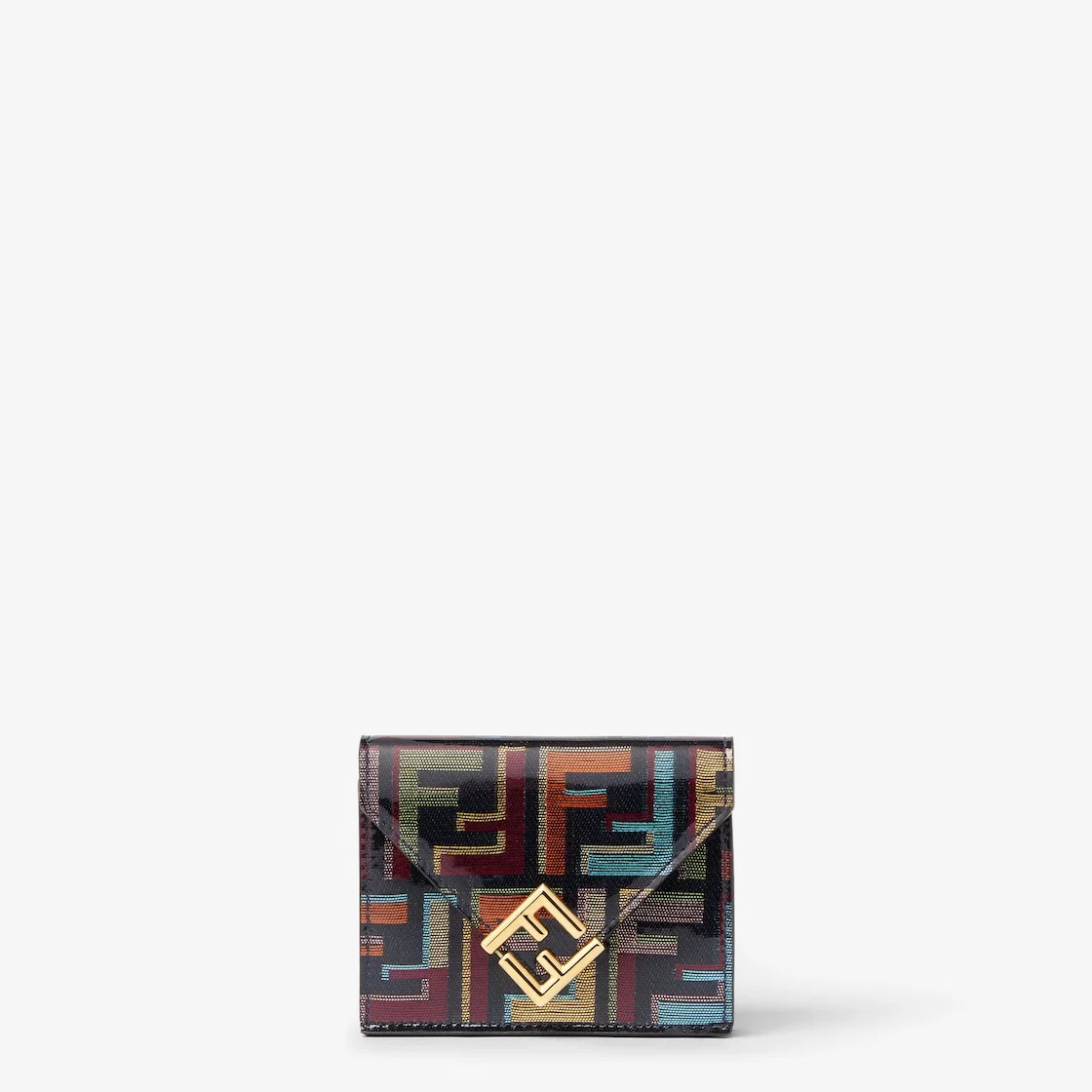 Medium FF Diamonds tri-fold wallet, geometric flap and diagonal FF logo. Divided into six card slots, a bill compartment and a coin pocket with a snap button. Made of glazed fabric with multicolored FF in metallic lame yarn. Details in dark blue calfskin. Gold-finish metalware. Made in Italy Composition: 56% polyurethane, 33% polyester, 11% polyamide, inside: 100% calfskin, 50% cotton, 42% polyamide, 8% resins, Product Code: 8M0480AW6QF1URO
