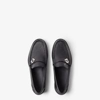 FF motif loafer. Made of black Cuoio Romano leather, finished with hand-sewn, tone-on-tone Selleria macro Selleria topstitches, an emblem of the iconic Selleria stitching handed down through generations of Fendi artisans since 1925. Rubber sole with injection moulding and FF design. Palladium-finish metalware. Made in Italy Composition: 100% calf leather, inside: 100% calf leather Product Code: 7D1804TDKF0QA1
