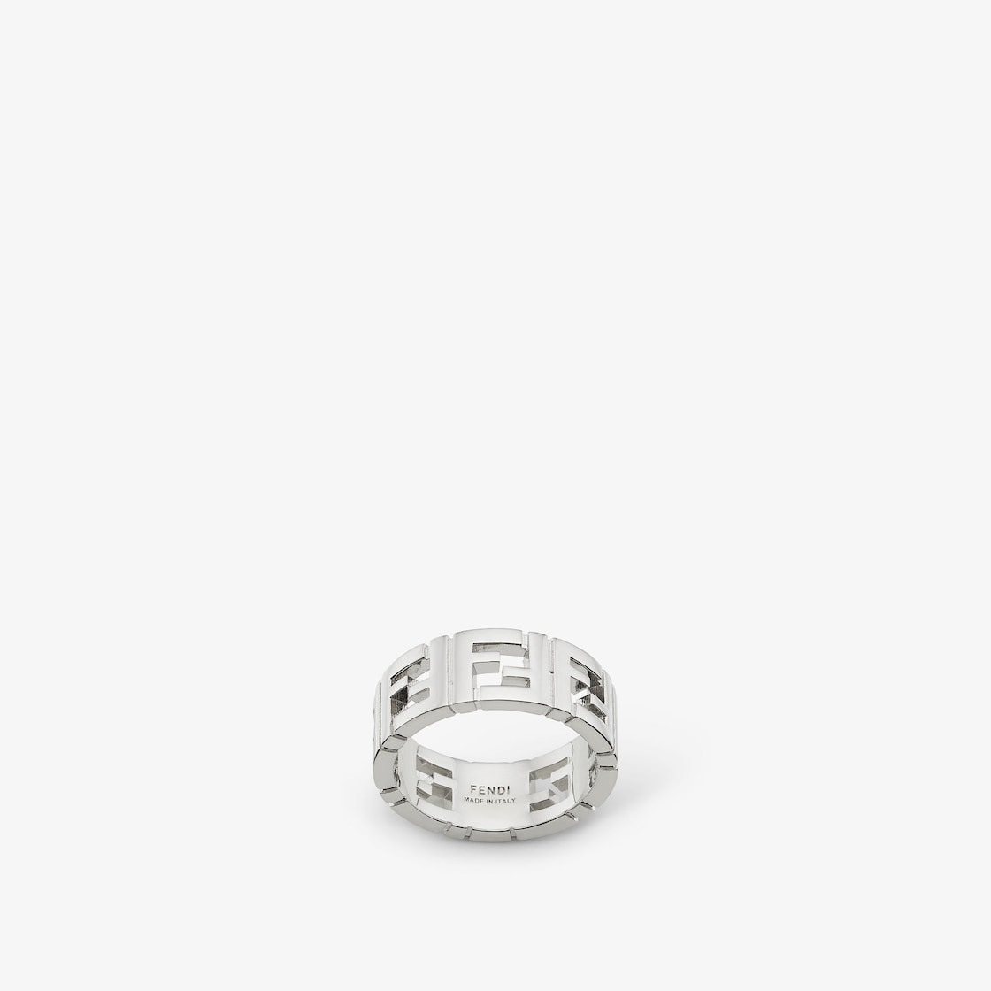 Wide-band ring with FF motif. Made of palladium-finish metal. Made in Italy Composition: 100% Bronze Product Code: 7AJ591B08F0TH0 Product Care: The product you have purchased may be embellished with a precious metal top or varnish, and may also feature appliques, gemstones (in various shades of the same color), crystals, plexiglass or resin. The mixture of materials and the unique features of the product are what give it its character. In order to best maintain the product’s appearance over time, we recommend avoiding contact with sea water, spa water, lacquers, perfumes, solvents, chemicals and abrasive materials. If necessary, clean with water and a neutral soap and/or polish with a dry microfiber cloth.
