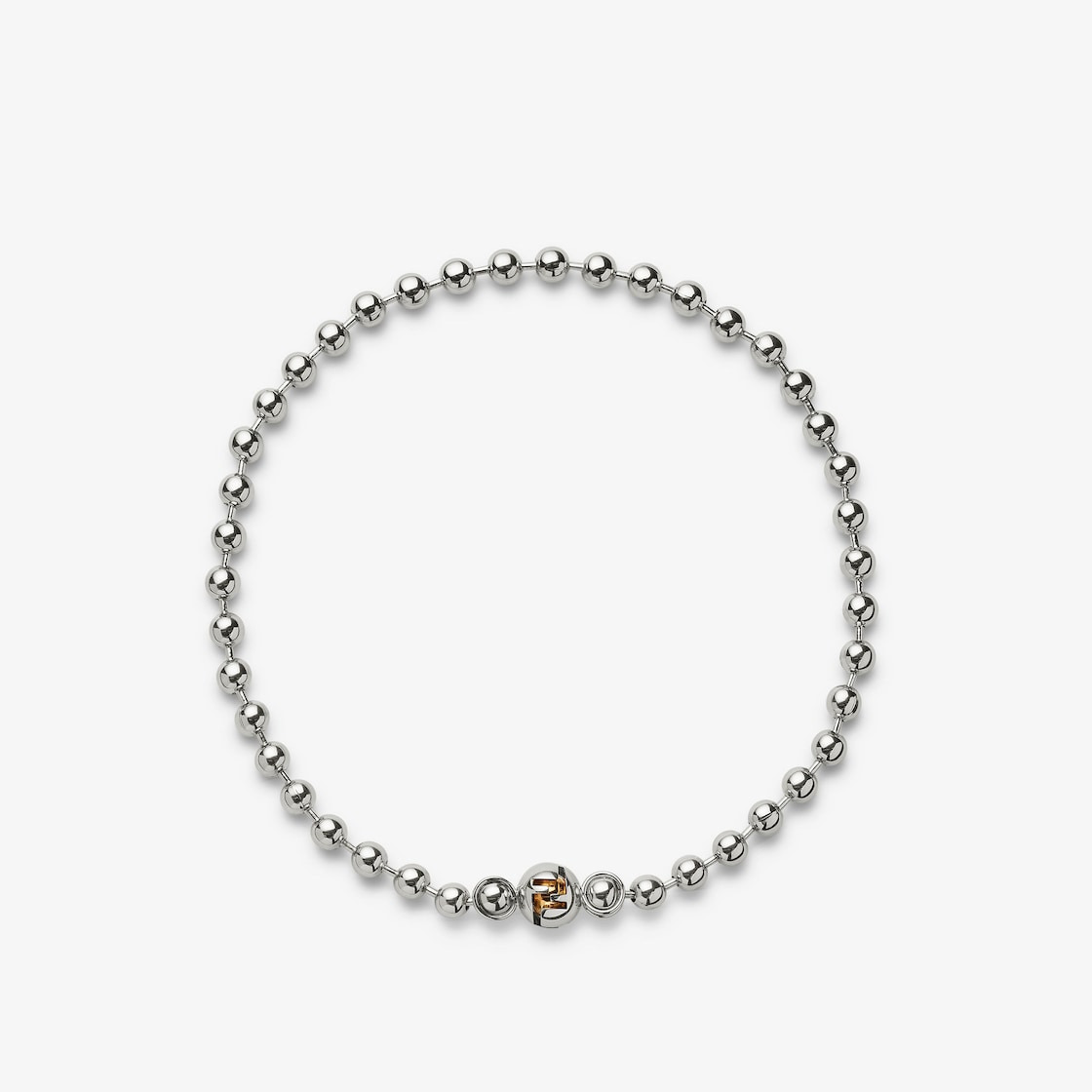 Necklace with metallic pearls and two-tone FF Sphere motif. Made of metal with a silver and gold finish. Made in Italy Composition: 100% bronze Product Code: 7AK008B08F0F0P Product Care: The product you have purchased may be embellished with a precious metal top or varnish and may also feature appliques, gemstones (in various shades of the same color), crystals, plexiglass or resin. The mixture of materials and the special details give this product its unique character. To best maintain the product’s appearance over time, avoid contact with sea water, spa water, lacquers, perfumes, solvents, chemicals and abrasive materials. If necessary, clean with water and a neutral soap and/or polish with a dry microfiber cloth.