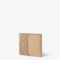 Wallet with eight interior card slots and two compartments for banknotes. Flat pocket on back. Made of beige leather with beige FF Canvas details. Metal FF Squared motif with a palladium finish. Made in Italy Composition: 100% calf leather, 43% cotton, 14% polyester, 43% polyurethane, inside: 53% cotton, 47% polyurethane Product Code: 7M0356AV86F19VE