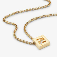 Chain necklace with cut-out FF cube pendant. Adjustable clip closure. Made of gold-finish metal. Made in Italy Composition: 100% bronze Product Code: 8AK891B08F0CFK Product Care: The product you have purchased may be embellished with a precious metal top or varnish and may also feature appliques, gemstones (in various shades of the same color), crystals, plexiglass or resin. The mixture of materials and the special details give this product its unique character. To best maintain the product’s appearance over time, avoid contact with sea water, spa water, lacquers, perfumes, solvents, chemicals and abrasive materials. If necessary, clean with water and a neutral soap and/or polish with a dry microfiber cloth.