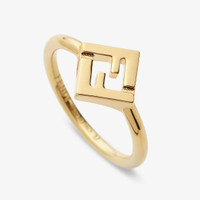Ring with cut-out FF logo cube. Made of gold-finish metal. Made in Italy Composition: 100% bronze Product Code: 8AL012B08F0CFK Product Care: The product you have purchased may be embellished with a precious metal top or varnish and may also feature appliques, gemstones (in various shades of the same color), crystals, plexiglass or resin. The mixture of materials and the special details give this product its unique character. To best maintain the product’s appearance over time, avoid contact with sea water, spa water, lacquers, perfumes, solvents, chemicals and abrasive materials. If necessary, clean with water and a neutral soap and/or polish with a dry microfiber cloth.