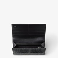 Continental wallet with flap. Flat pocket on back. Interior equipped with cardholder slots, a spacious gusseted compartment for bills and a zip pocket. Made of gray textured weave fabric with FF motif. Embellished with black leather insert and inlaid detail in yellow. Black leather lining. Made in Italy Length:19, cm Height:9,5 cm Depth:2, cm Composition: 45% Cotton, 40% Polyurethane, 15% Polyester, embroidery: 100% Calfskin, inside: 100% Calfskin, 61% Cotton, 32% Polyester, 7% Polyurethane