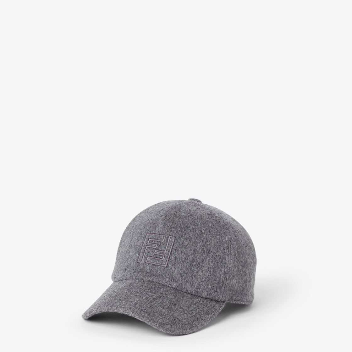 Baseball cap with semi-stiff peak made entirely in gray cashmere and wool felt. Customized with matching embroidered FF detail on the front. Made in Italy Composition: 90% wool, 10% cashmere, lining: 100% cotton, embroidery: 100% polyester Product Code: FXQ768AYK2F0COK