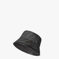Bucket hat made of FF jacquard fabric in black and gray. Finished with black leather edges. Made in Italy Composition: 65% polyester, 35% cotton, 100% sheep leather, 100% cotton Product Code: FXQ801ALHDF1ED9