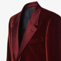 Single-breasted tailored blazer. Chest pocket and welt pockets on the sides. Center slit at the back. Front fastening with double button. Lined. Made of burgundy shaved cotton velvet. Finished with tone-on-tone silk lapels. Contrasting micro FF lining. Made in Italy Composition: 100% cotton, 78% silk, 22% polyester, lining: 100% cupro, secondary lining: 65% polyester, 35% cotton Product Code: FJ0980AVY1F0HM6