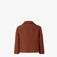 Short, slim–fit jacket. Lapel collar and 3/4 raglan sleeves. Lined. Made of wool and silk with Fendi Mini Dots geometric print in red and black, inspired by the iconic Fendi Fall/Winter 2000 fashion show. Made in Italy Composition: 77% wool, 23% silk, 100% viscose Size worn: 38 IT. The model is 180 cm tall Product Code: FJ7642AYN3F1TRL