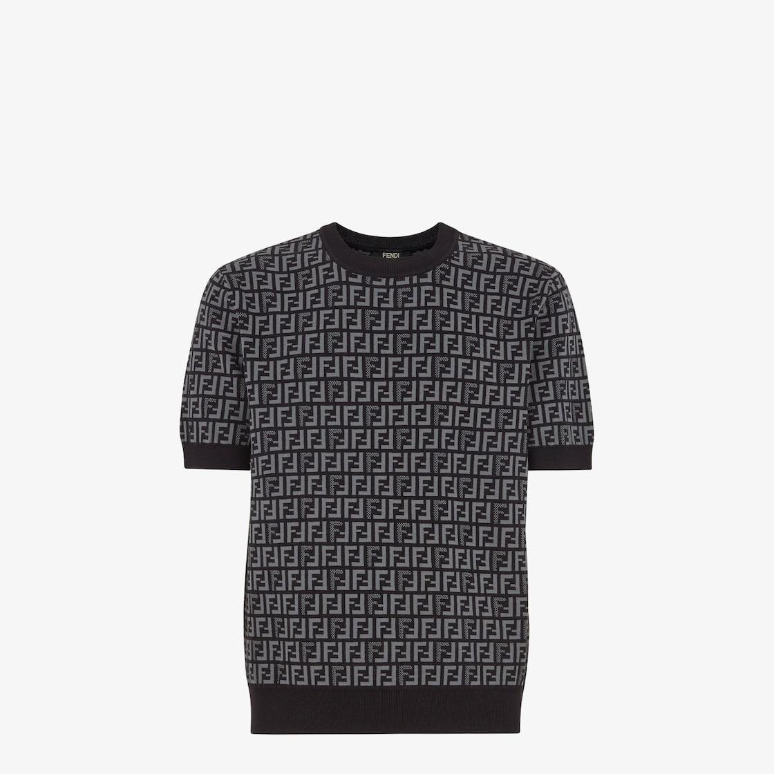 Short-sleeved, crew-neck jumper. Ribbed edges. Made of black viscose yarn with an FF motif inlay. Made in Italy Composition: 67% Viscose, 33% Polyester Fit: Regular Size worn: 48 IT. The model is 185 cm tall Product Code: FZY443AKEWF1HXU