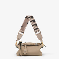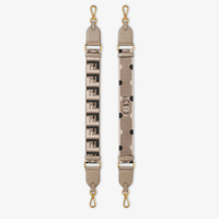 Short shoulder strap with double clip, to use in combination with any bag with attachment points. Made of jacquard fabric with the iconic multicolor FF motif on one side and Fendi Dots lettering on the other. Dove gray leather details. Gold-finish metalware. Made in Italy Composition: 100% polyester, 100% calf leather Product Code: 8AV967AYB0F1UJ4