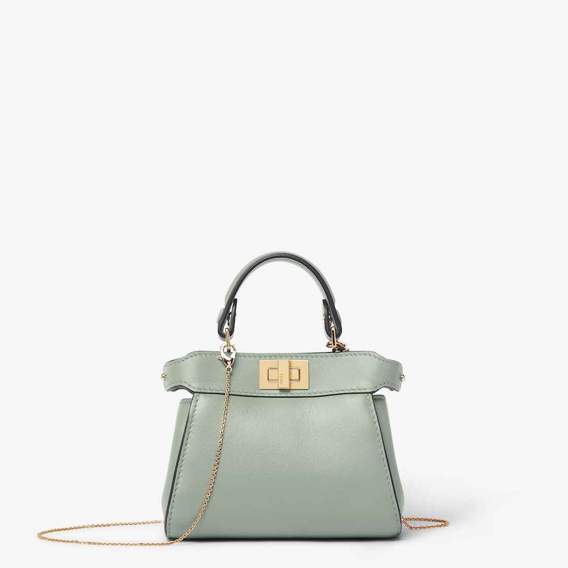 Iconic Nano Peekaboo bag with every detail recreated. Featuring a leather-lined interior, two compartments separated by a stiff partition, a removable handle with two snap buttons and the classic twist lock. It can be carried by hand or worn cross-body thanks to the fine chain shoulder strap. Made of matcha green nappa leather. Gold-finish metalware. Made in Italy Composition: 100% lamb leather, inside: 100% sheep leather Product Code: 7AS294ABVEF1SK5