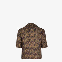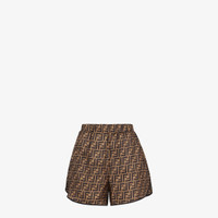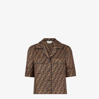 Two-piece pajamas consisting of a short-sleeved shirt and shorts. Made of silk with FF motif printed all over in shades of brown and tobacco. Embellished with contrasting piping and red Fendi lettering embroidered on the jacket pocket. Button closure and matching silk pouch. Made in Italy Composition: 100% silk, lining: 100% silk,nr 4 buttons: mother-of-pearl Fit: Regular Size worn: 38 IT. The model is 178 cm tall Product Code: FE5085A8G3F118W