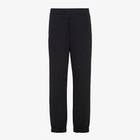 Jogger pants with stretch insert at the waist and ankle. Side pockets and welt pockets on the back. Made of black pure cotton. Finished with palladium-finish metal FF logo under the back, right pocket. Made in Italy Composition: 100% cotton, 1 button: mother of pearl Size worn: 48 IT. The model is 189 cm tall Product Code: FB0942AU8YF0QA1