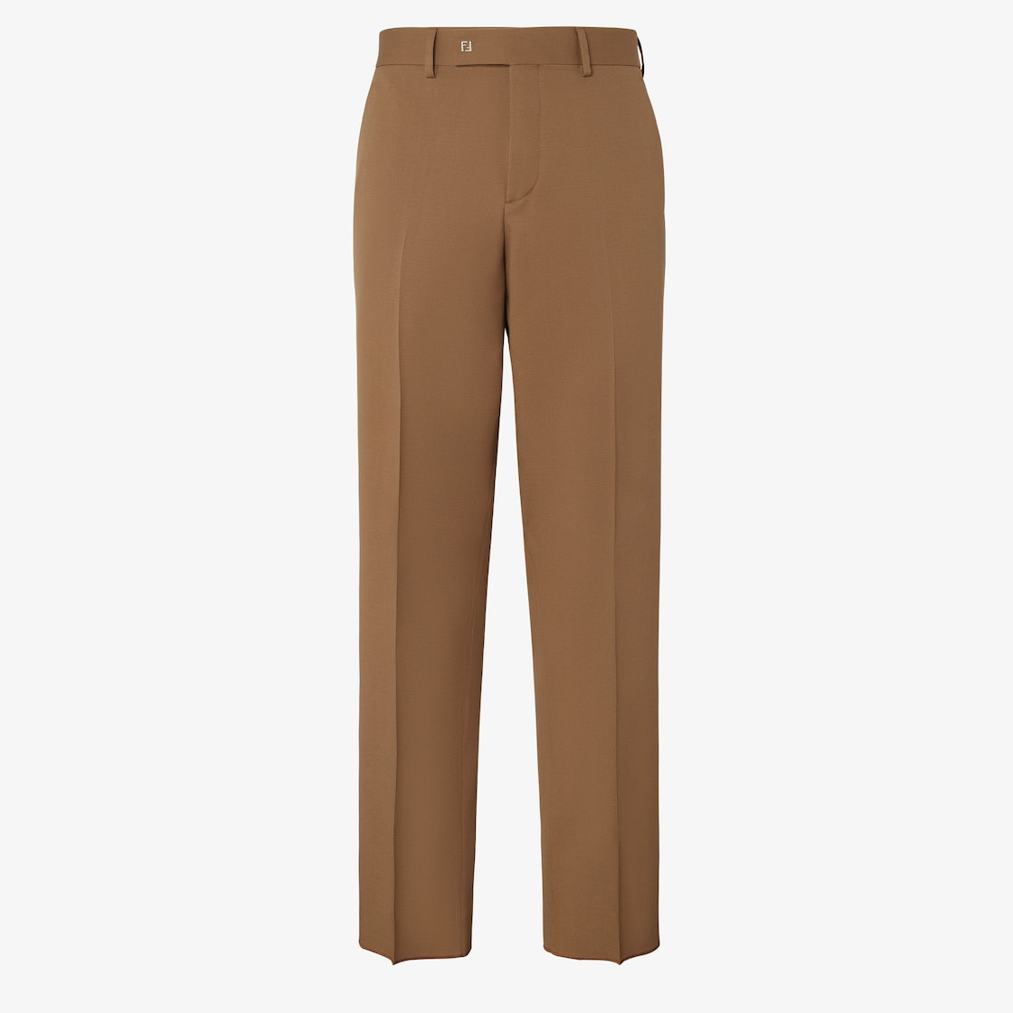 Cigarette pants with side pockets. Belt loops on the waistband and trouser crease. Concealed zipper and hook closure. Width at the hem: 22 cm (8.7 inches). Made of rust wool gabardine. Customized with a button-effect palladium-finish metal micro FF logo applied at the waist. Made in Italy Composition: 100% fleece wool, lining: 100% viscose, 100% cotton, 1 button: mother-of-pearl Product Code: FB1089AU60F0QE1