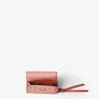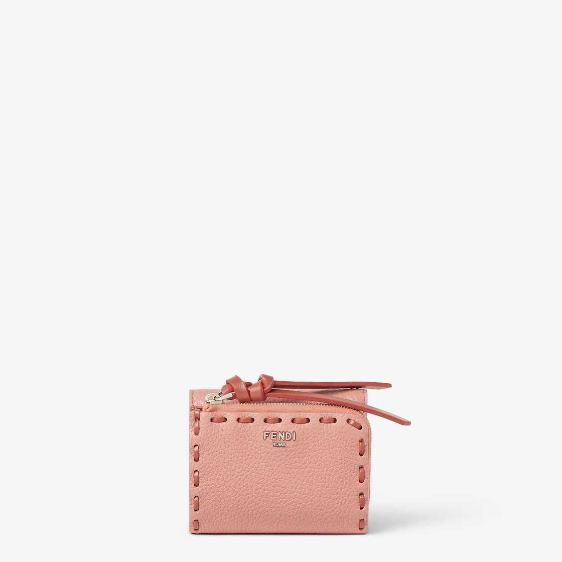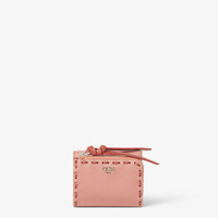 Compact Peekaboo tri-fold wallet, with a large internal compartment for bills, a cardholder slot and an external coin purse with a zipper and long knotted zipper pull. Made of powder pink Cuoio Romano leather with 82 hand-sewn, contrasting topstitches, an emblem of the iconic Selleria stitching handed down through generations of Fendi artisans since 1925. Palladium-finish metalware and metal FENDI logo. Made in Italy Composition: 100% calf leather, inside: 100% calf leather Product Code: 8M0499AURNF1TWR