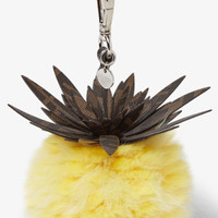 Bag charm made of yellow rabbit and fox fur and brown FF canvas. The charm is distinguished by its unique pineapple-shaped design. Palladium-finish metalware with logo clip. Made in Italy Composition: 100% fox fur, 100% rabbit fur, 49% polyurethane, 28% cotton, 23% polyester Product Code: 7AS361ATF5F1RHF