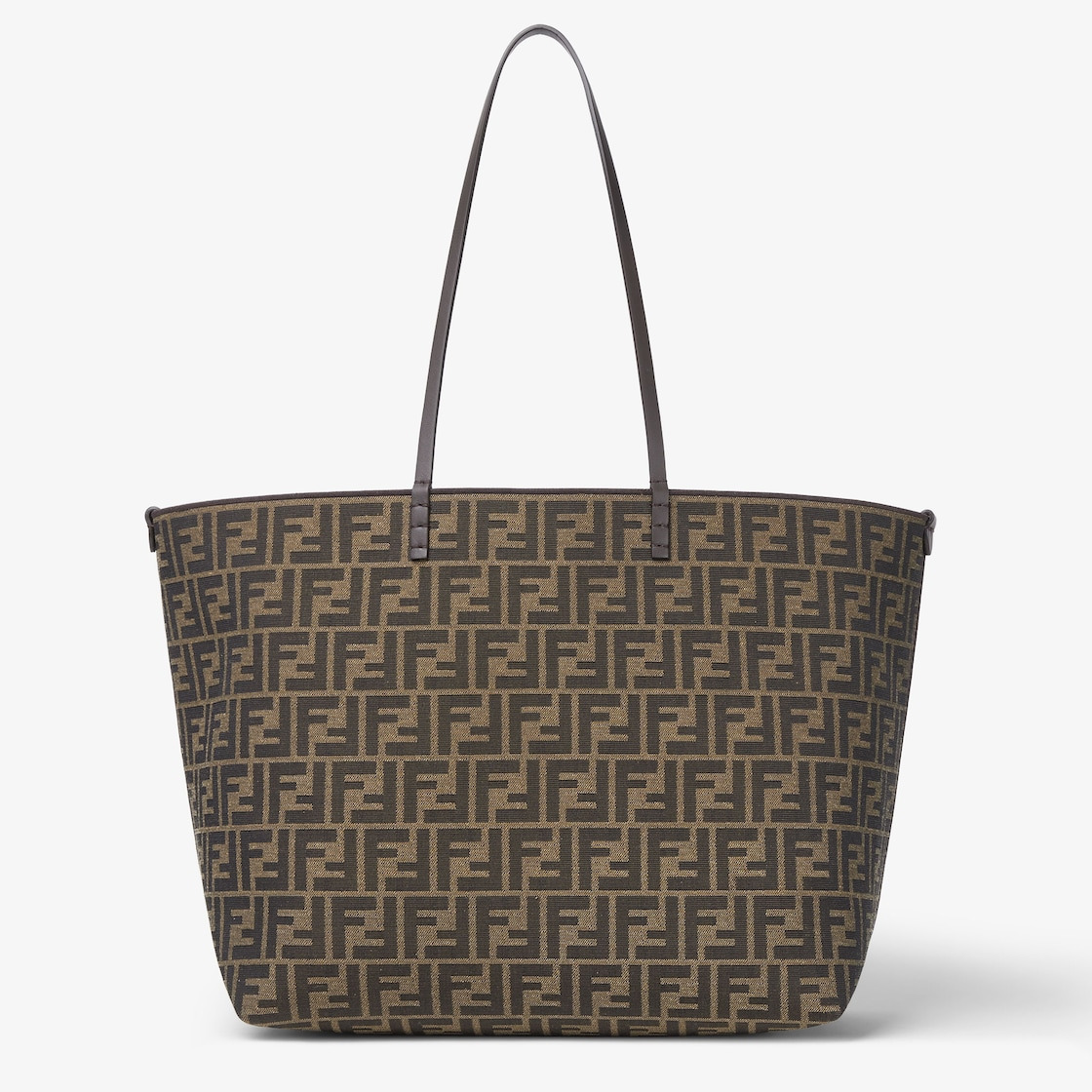 Large shopper bag, created in 1997 together with the Baguette and designed to partner it. A functional, timeless carry-all, it is the perfect combination of practicality and refined details. With a reversible design, it is made of jacquard with a brown Pequin striped motif on one side and the iconic FF jacquard in tobacco brown on the other. It has a removable internal zipper pocket in tone-on-tone leather and gold-finish metal accessories. It can be carried by hand or on the shoulder thanks to the brown calfskin handles finished with hand-sewn macro topstitching, an emblem of the iconic Selleria stitching handed down through generations of Fendi artisans since 1925. Made in Italy. Made in Italy Composition: 63% polyester, 31% cotton, 6% polyurethane, 100% calf leather, inside: 65% polyester, 35% cotton Product Code: 8BH425AYDBF1GL7