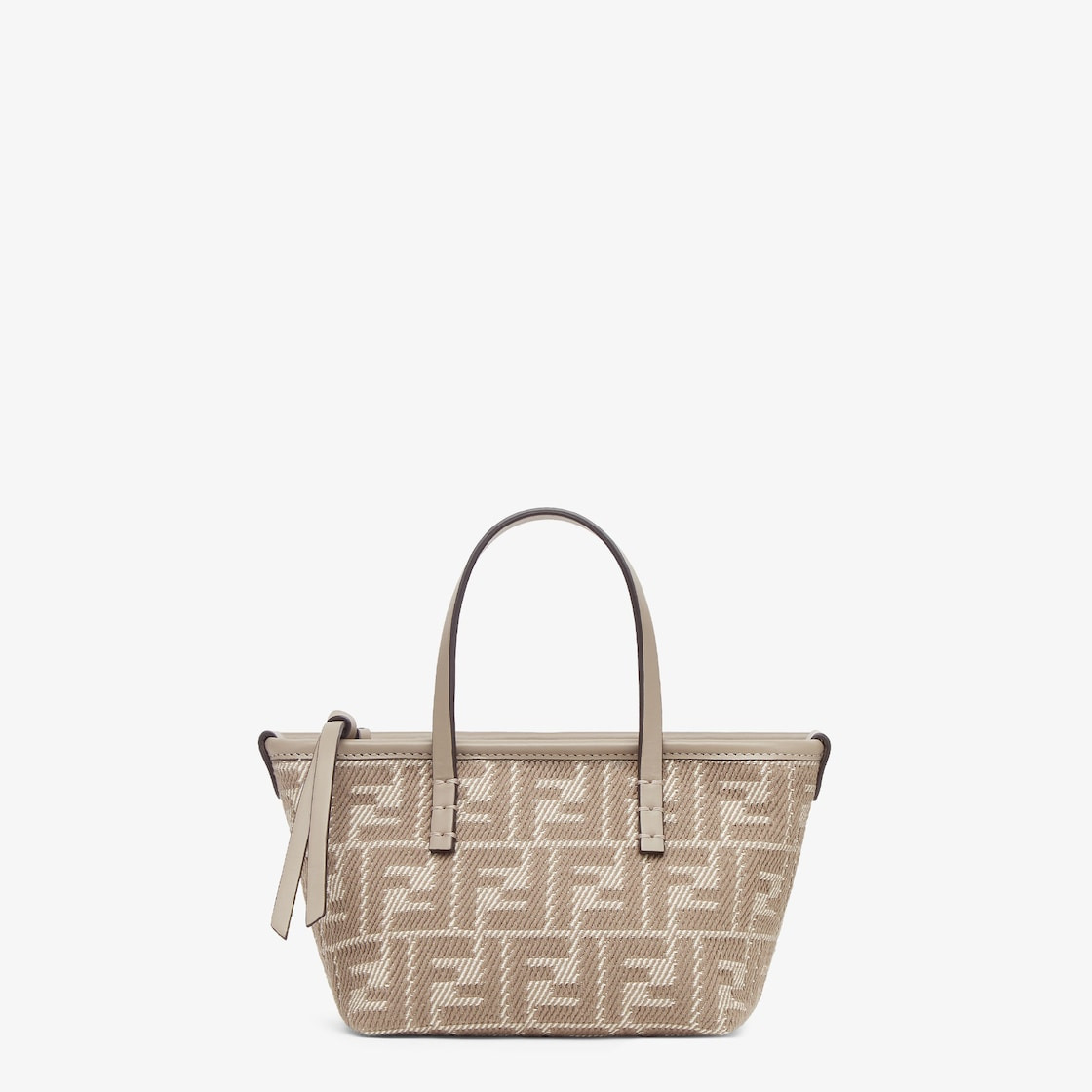 Mini shopper bag, inspired by the bag launched in 1997 together with the Baguette, and designed to partner it. It is the perfect combination of practicality and refined details. Made of denim-effect FF jacquard in shades of dove gray. Featuring an internal compartment lined in a tone-on-tone denim-effect Pequin jacquard, zipper closure with long dove gray calfskin zipper-pull, and gold-finish metalware. It can be carried by hand with the double handles or worn either on the shoulder or cross-body thanks to the adjustable, detachable shoulder strap, both in calfskin. Holds a 6.7-inch smartphone, Mini Trifold card holder or wallet, keys and lipstick. Made in Italy Composition: 97% cotton, 3% polyester, 100% calf leather, inside: 95% cotton, 5% polyester Product Code: 8BS096AUPXF1SNP